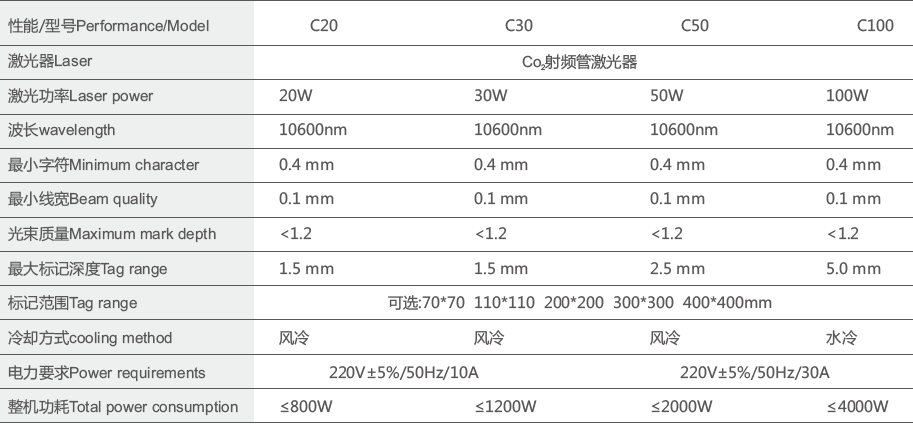 本機(jī)可選美國進(jìn)口CO2射頻激光器或國產(chǎn)CO2射頻激光器,出光穩(wěn)定、壽命更長;